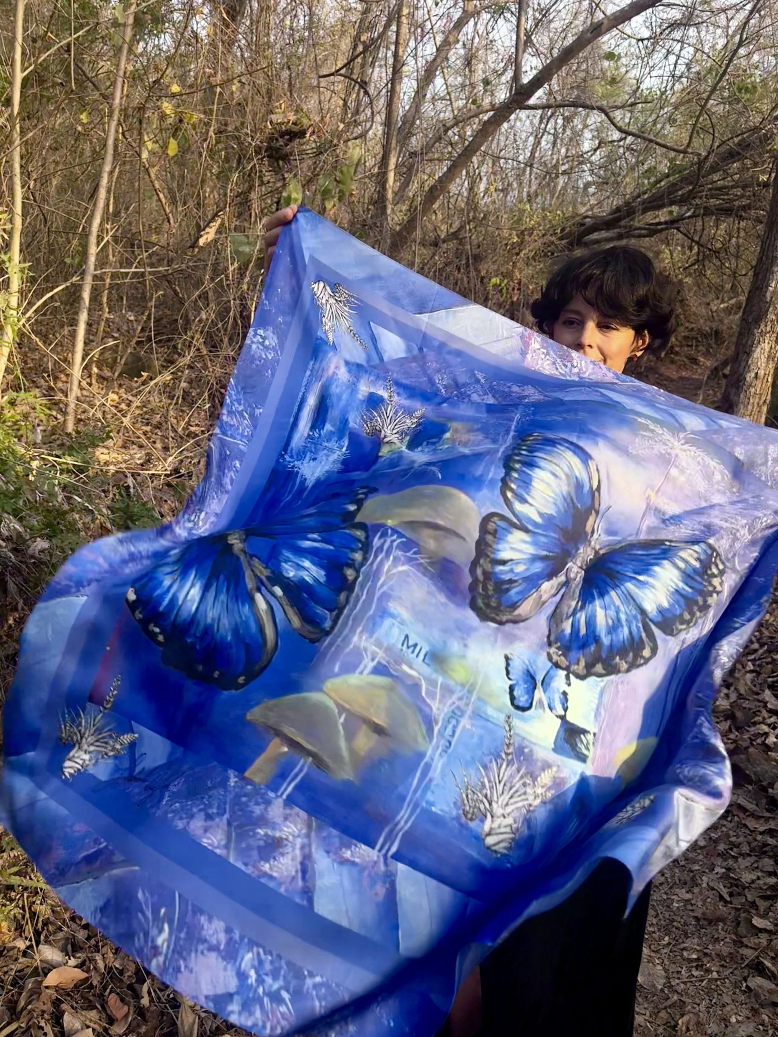 Diseños originales en seda que entrelazan arte, identidad cultural y biodiversidad en una expresión atemporal.