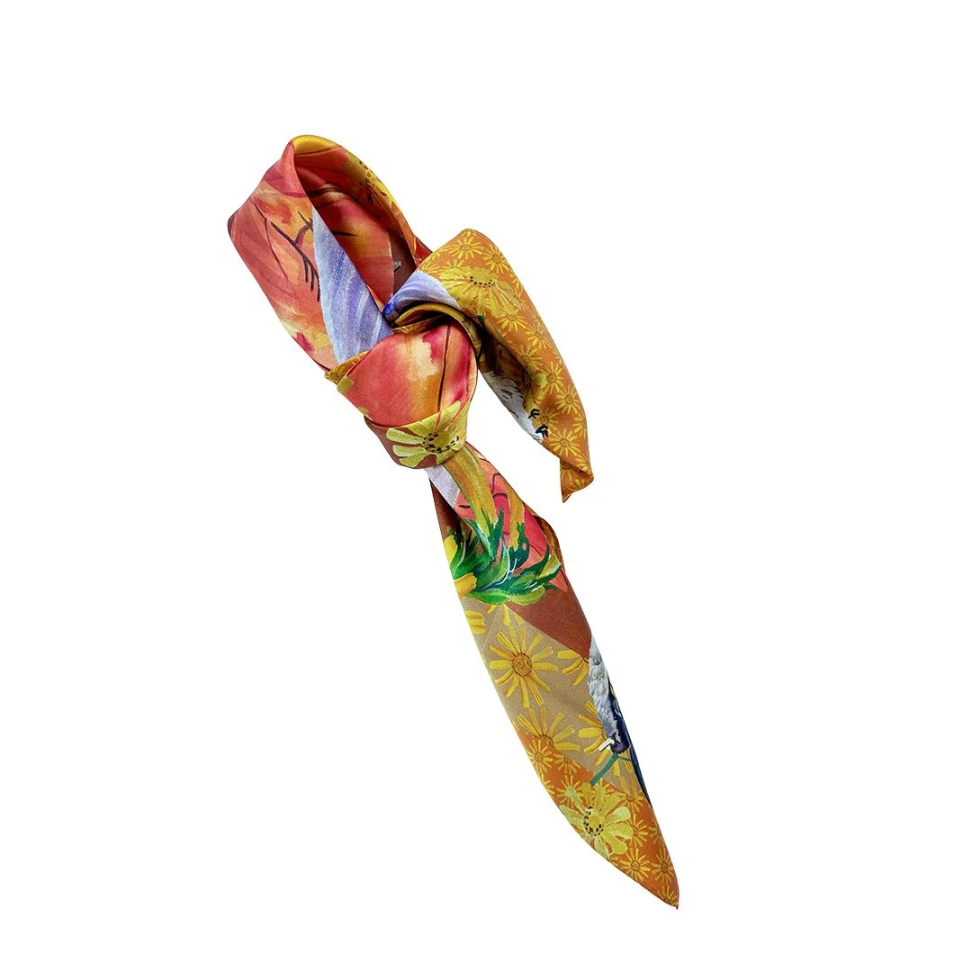 Crafted from 100% mulberry silk of the highest quality (6A grade), this double-printed head and neck scarf measures 43x43 inches (110x110 cm), making it a versatile addition to any wardrobe. Whether draped elegantly around your neck or tied in your hair, it offers a timeless elegance suitable for any occasion. The lightweight design and machine-rolled edges ensure its effortless care—simply hand wash with mild silk soap.